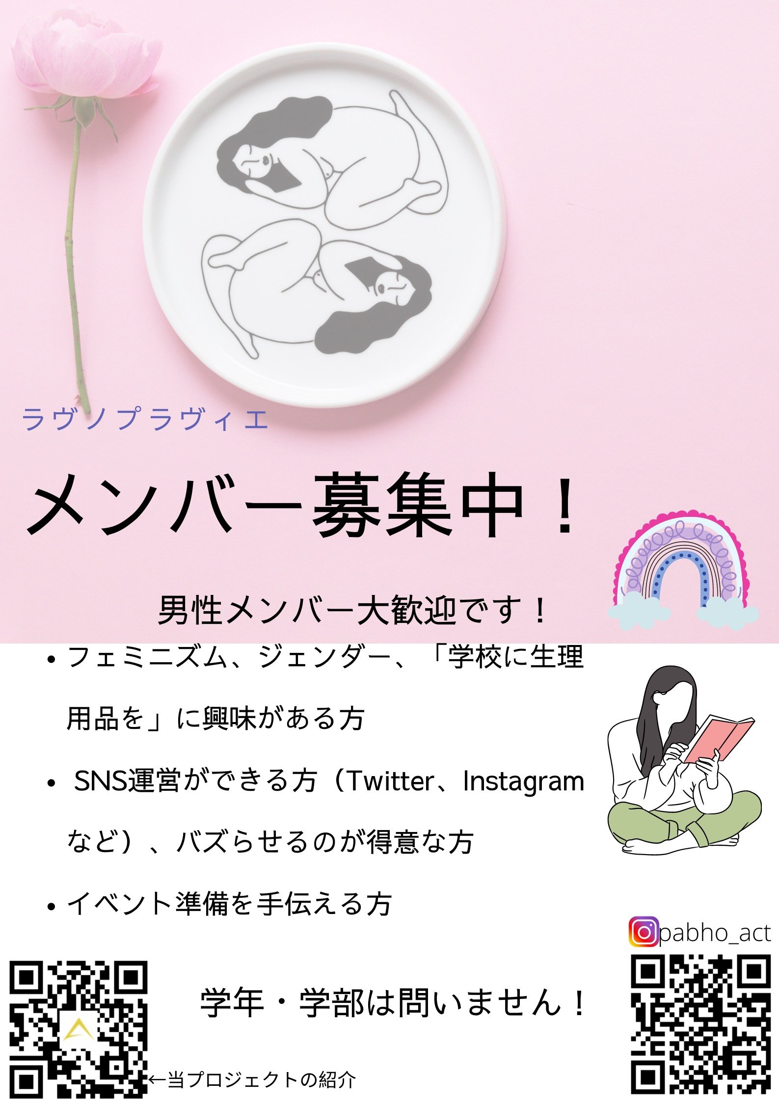 ・ジェンダー、フェミニズム、「学校に生理用品を」等に関心がある