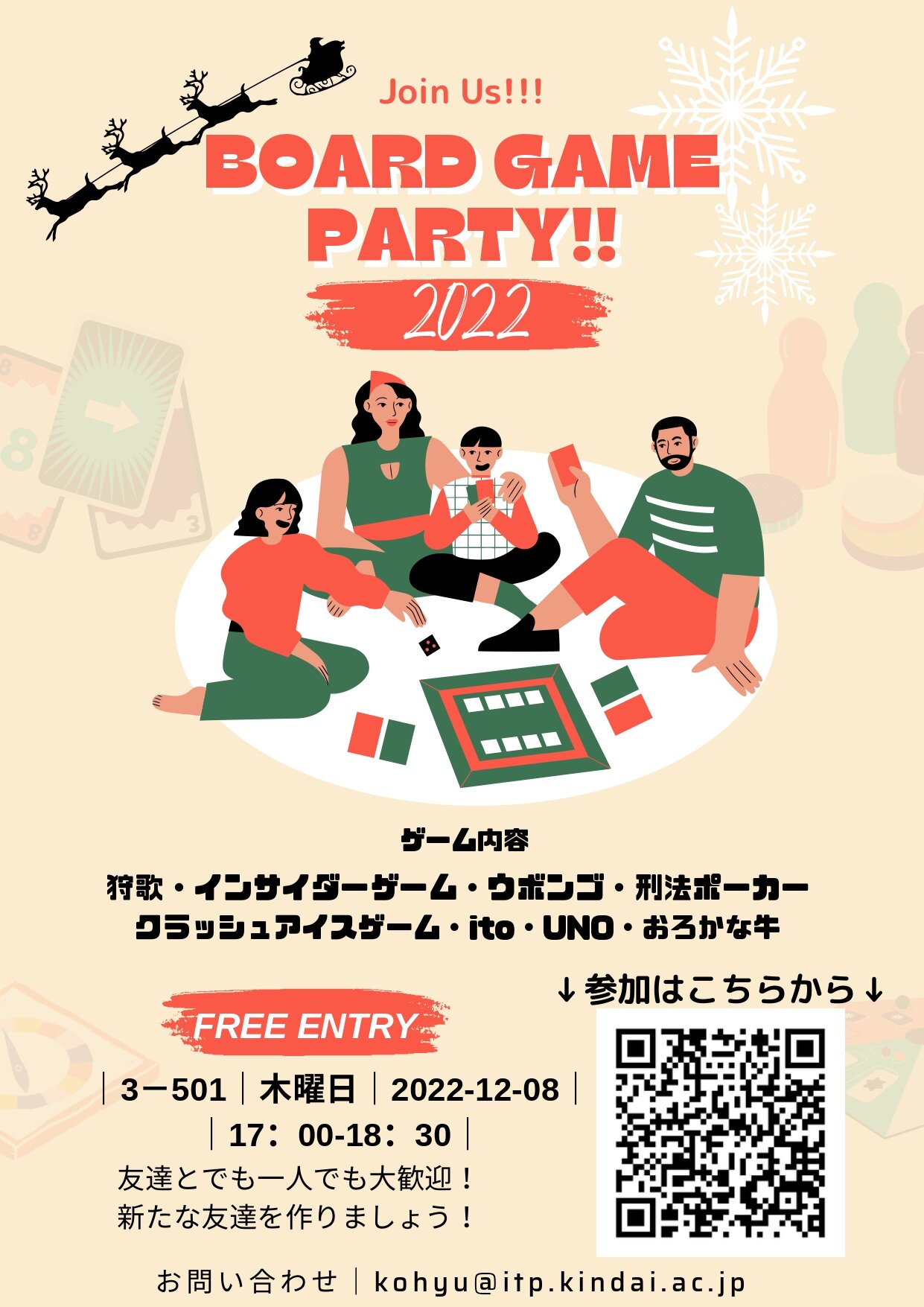| 2022年12月08日 | 17:00~18:30 | 3号館501教室 |