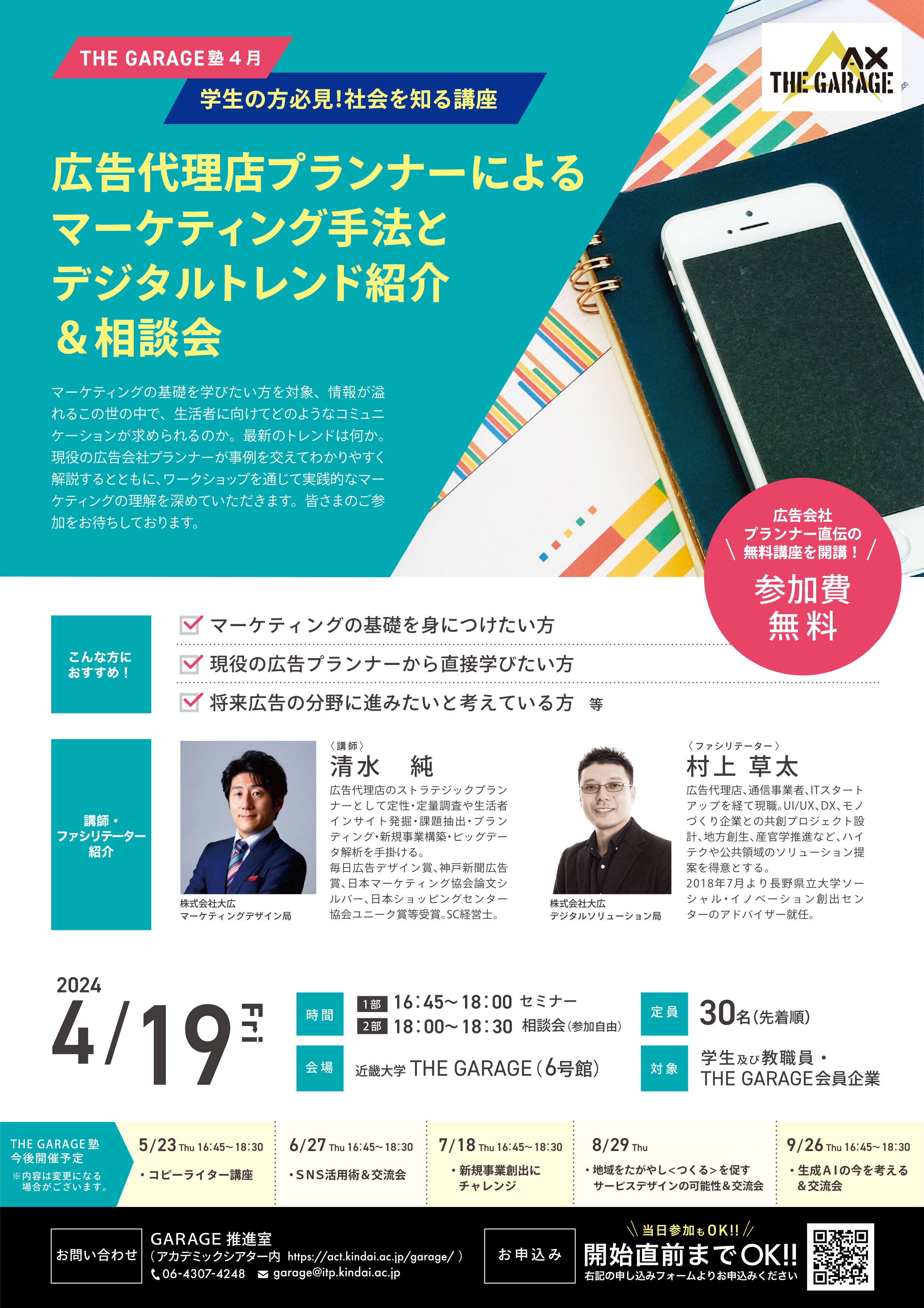 THE GARAGE塾「 広告代理店プランナーによるマーケティング手法とデジタルトレンド紹介&相談会」