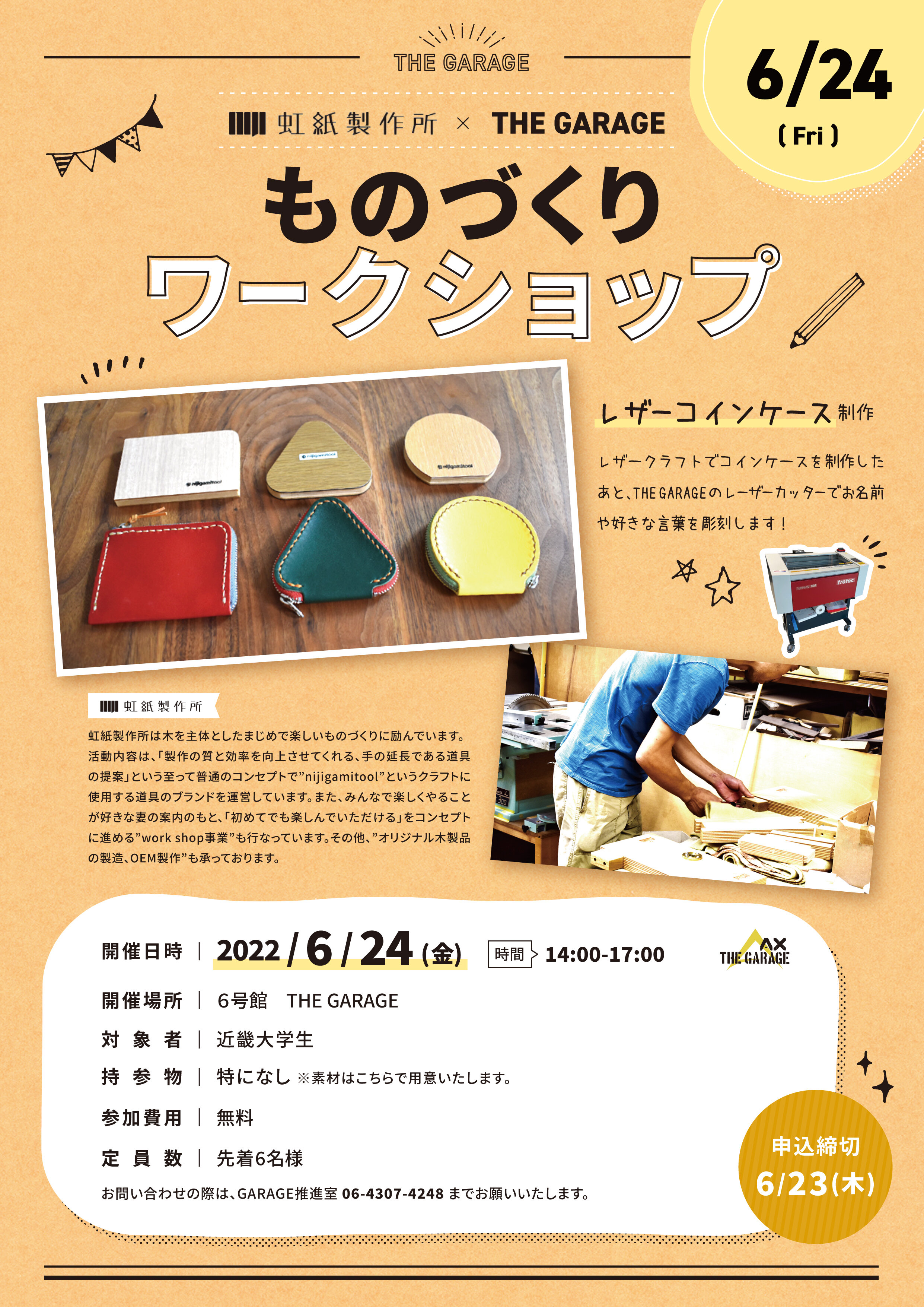 虹紙製作所×THE GARAGE ものづくりワークショップ【レザーコインケース制作】