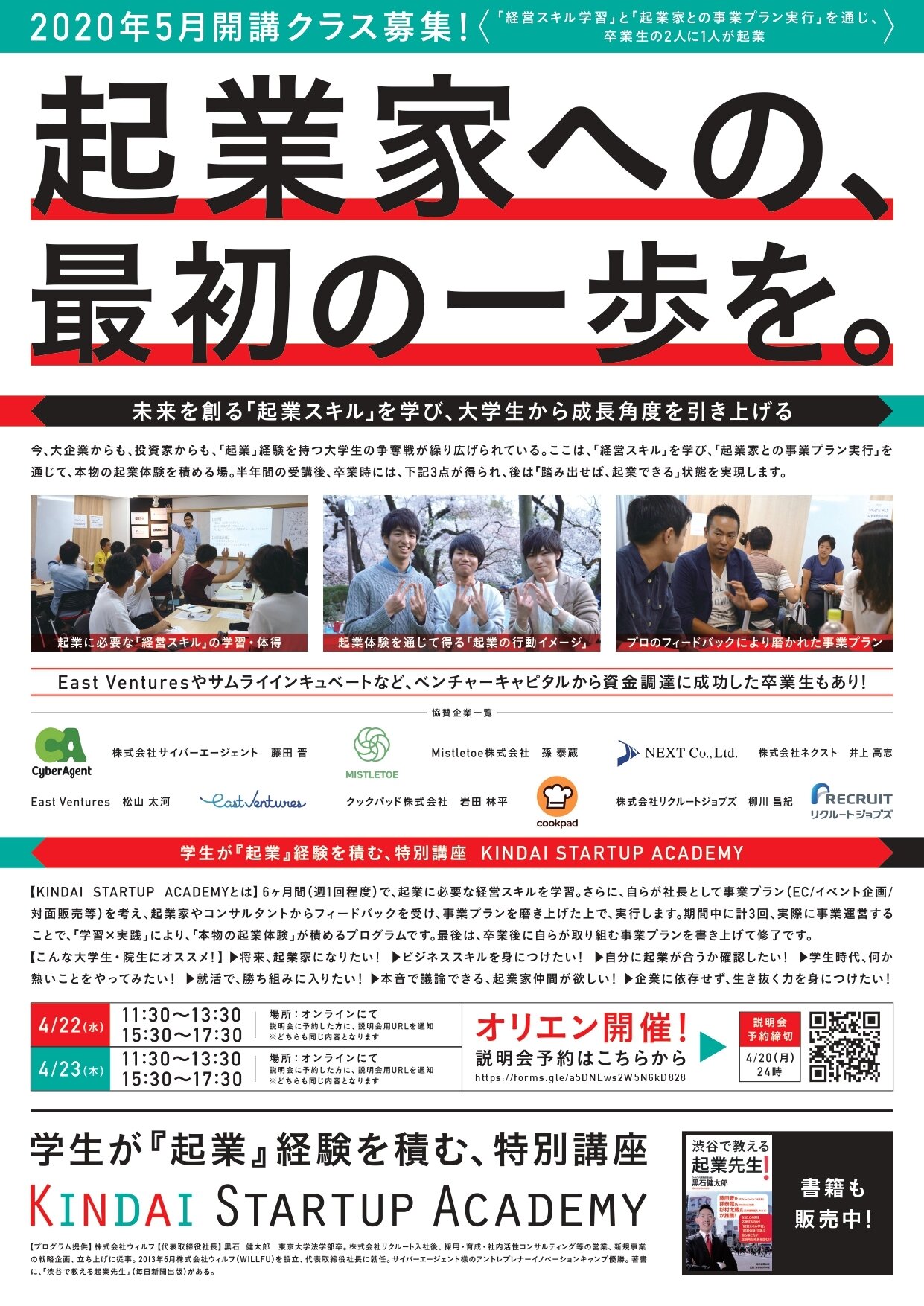 皆さんが起業家人材への一歩を踏み出す特別講座 「KINDAI STARTUP ACADEMY」を開催いたします。