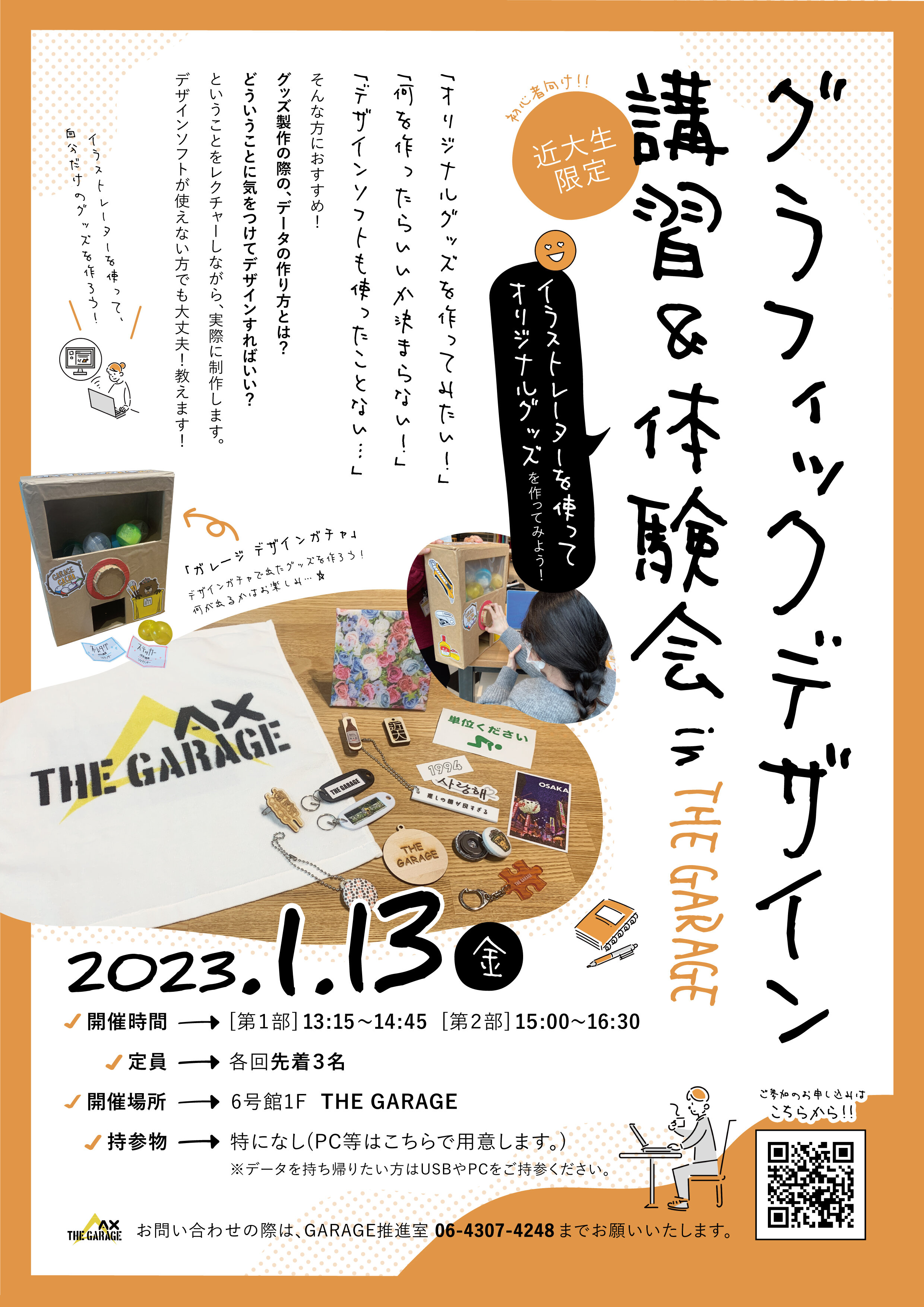 | 2023年01月13日 | 13:15~14:45 | AX THE GARAGE(東大阪キャンパス6号館) |