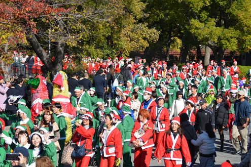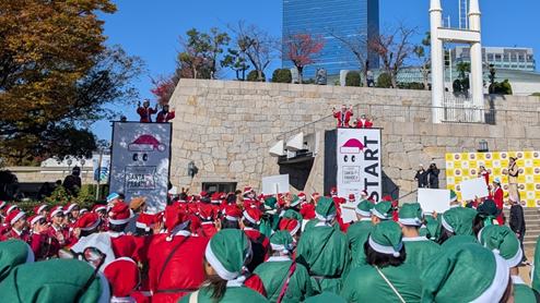 スタートラインに移動し、赤いサンタとみどりのサンタ約4,000名がスタートしました。
