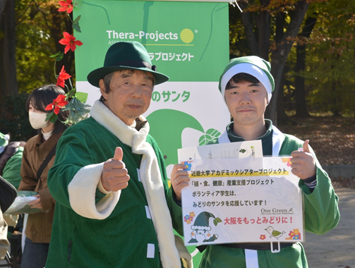「植・食、健康」産業支援プロジェクトは、連携団体である一般社団法人テラプロジェクトが行う大阪城公園で行われる「みどりのサンタウォーク」に参加するボランティアスタッフを募集し実施しました。