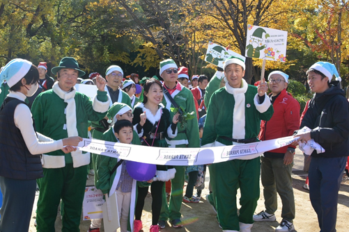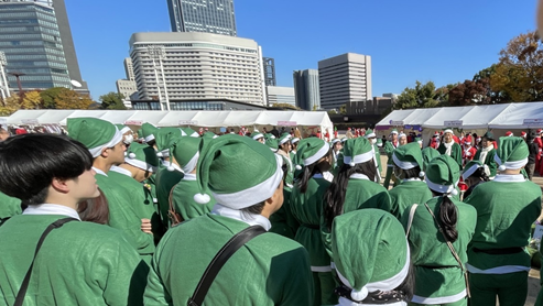 当日は、SANTA PARADE OSAKA 2024と連携し、特別参加枠でまちにみどりを運ぶ「みどりのサンタ」の衣装を着て一緒にみどりのPRウォーク「大阪城公園一周約4キロのコースを約1時間かけて完歩」しました。園児から社会人まで幅広い年代の参加者と共に紅葉の綺麗な大阪城公園を楽しく歩きました。SANTA PARADE OSAKA 2024参加者は赤い衣装を着て参加し、完走者の中から先着200名にみどりのサンタからお花の苗がプレゼントされました。